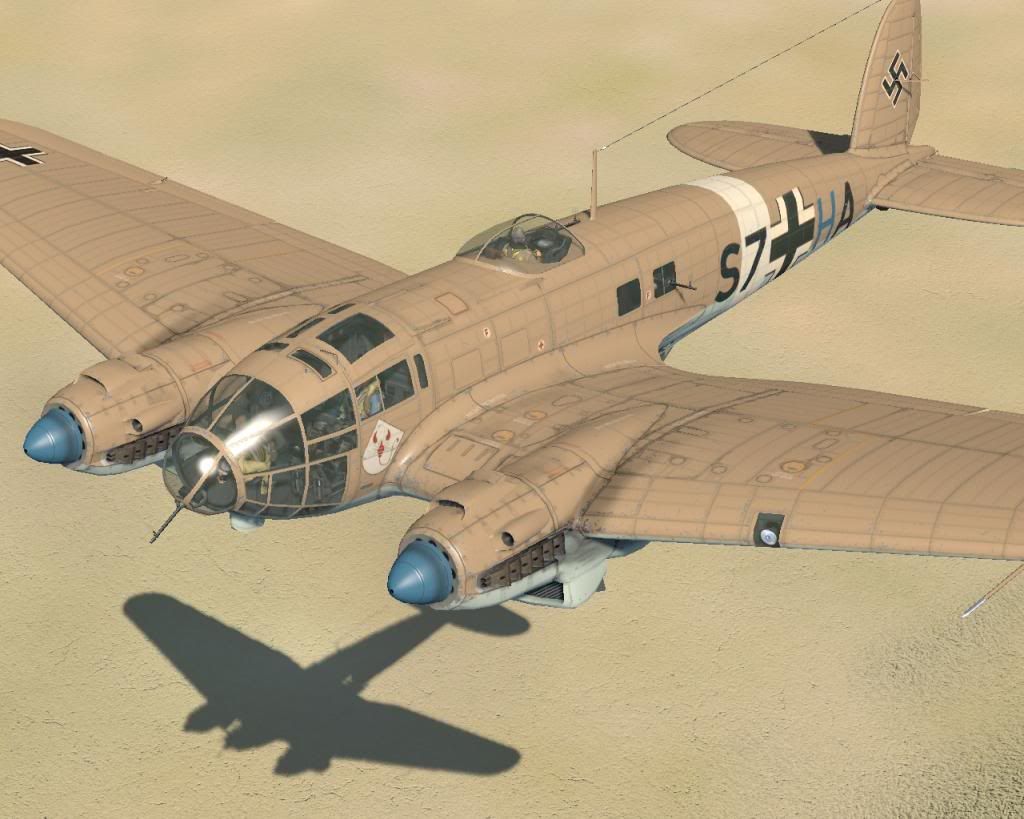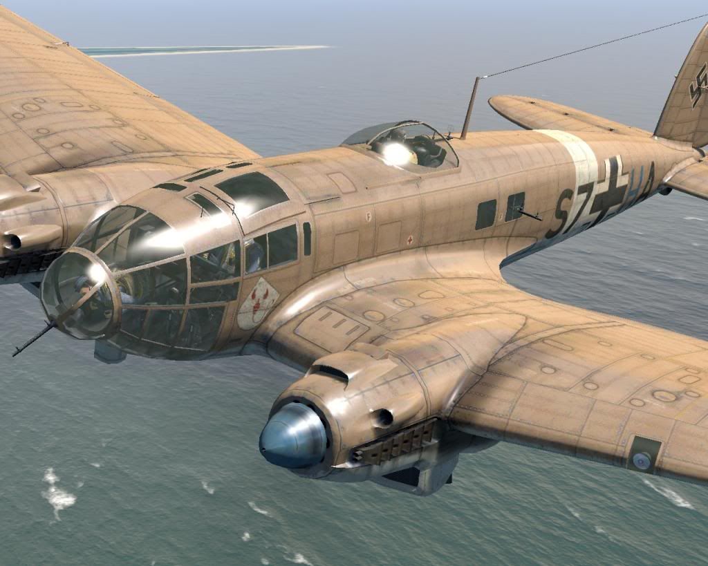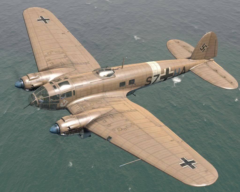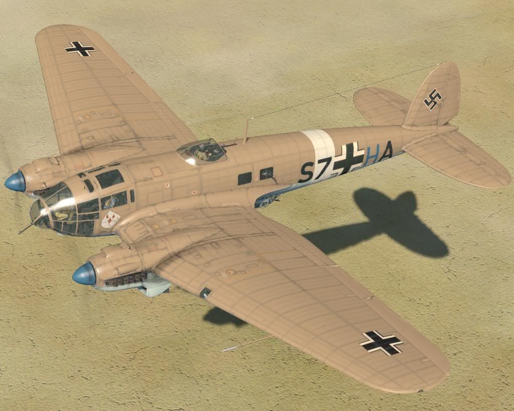 Heinkel He-111H-6 S7+HA Stg3, Derna, Libya, 1941 NOTE: The skin includes many small stencils and markings (gears warning, fuel-filling cap, no step, do not touch, engine warnings, etc.) Download: http://airwarfare.com/sow/index.php/...rma-libya-1941 'During the course of the war, He-111s fought over Poland, Norway, France, UK, the Balkans, Iraq, the Soviet Union, North Africa, the North Sea, as well as the Arctic and Mediterranean Ocean. Derna was famous as fighting took place there following the capture of Tobruk, 2 brigades of the 6th Australian Division under Major General Iven Mackay pursued the Italians westwards and encountered an Italian rear guard at Derna. The arrival of the German forces and more specifically the Luftwaffe though swung the push back towards the Axis forces and it was not only the might of the Stuka and Me-109 that helped achieve this, but also the transportation and bombing capability of the Heinkel He-111. (Source: AA33708 The Aviation Archive Limited Edition Certificate)' This skin represents: 'An He-111H-3 (or may be a H-6) variant S7+HA of Geschwaderstab StG 3, based in Derna airfield, Libya, September 1941. The H-3 was normally fitted with 5 machine-guns (two in the fuselage windows, two in the gondola and one in the ventral turret) and 1 cannon (in the nose position). The letter 'H' painted in blue, signifies this aircraft belongs to a Headquarter battalion and the white ring around the fuselage and white tipped wings served as quick identifying markers in the Mediterranean arena between 1941-43.' from: http://maxaviationarchive.blogspot.s...-by-corgi.html Skins- New - Markings New - Markings no swastika Weathered - Markings Weathered - Markings no swastika Weathered - Generic http://i4.photobucket.com/albums/y12...r.jpg~original http://i4.photobucket.com/albums/y12...2.jpg~original weathered version: http://i4.photobucket.com/albums/y12...3.jpg~original http://i4.photobucket.com/albums/y12...4.jpg~original I hope you like. Cheers... major-setback |